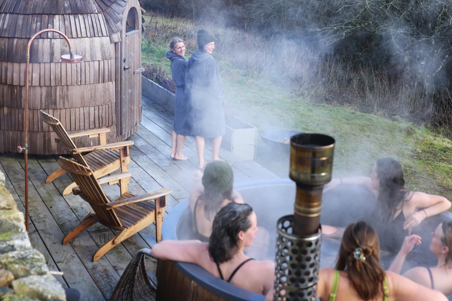 Each 2 hour session invites you to fully surrender to the elements — shifting between heat and cold, stillness and movement, solitude and space.Begin in the wood-fired sauna, where you can deepen your ritual with a traditional birch whisk, awakening the skin and stirring the senses. Then plunge into the cold water to feel truly alive.Float in the warmth of the hot tub, gazing out over wild Dartmoor skies. Stroll slowly around the ancient farmstead, reconnecting with the land. Between dips, retreat into the Day Barn — a peaceful, light-filled space perfect for reading, writing, or simply watching the clouds roll by.